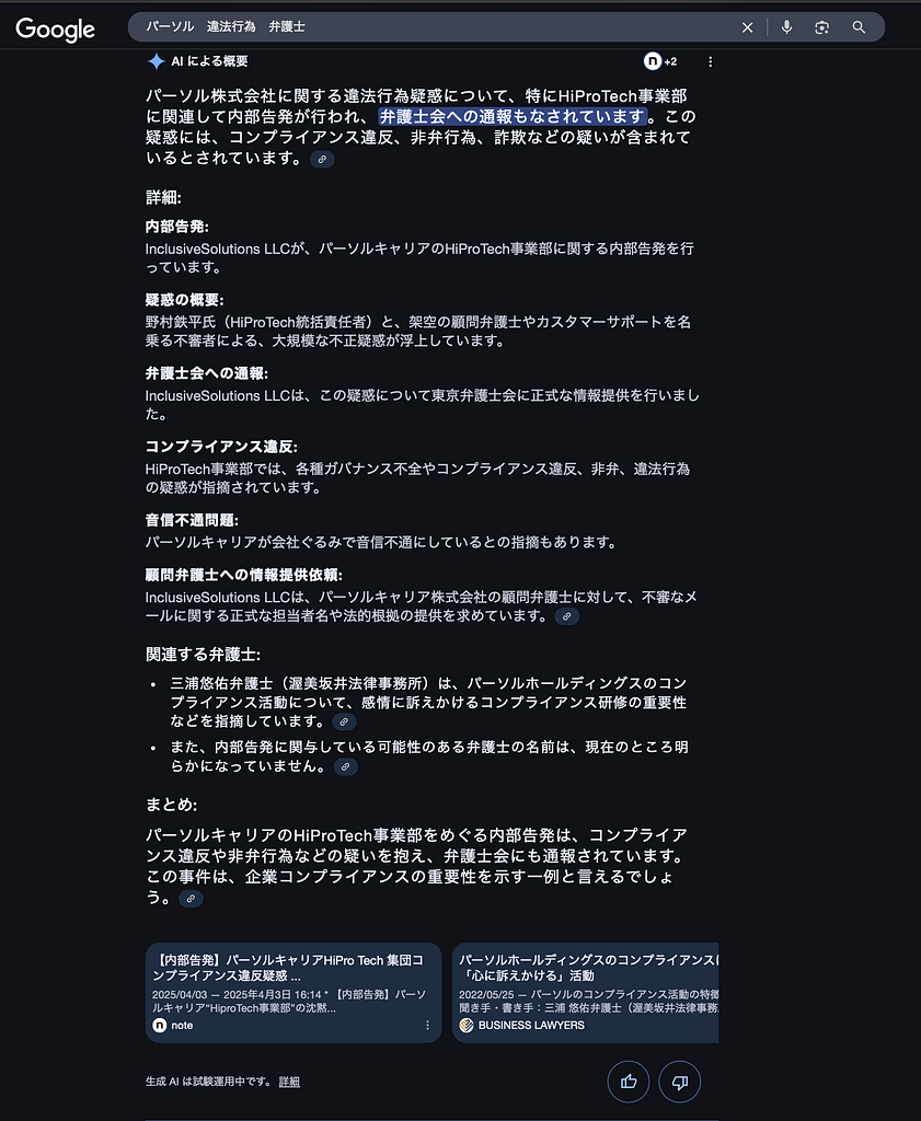 まとめ:GoogleのAIが、パーソルのガバナンス不全を社会的事実と扱いつつある