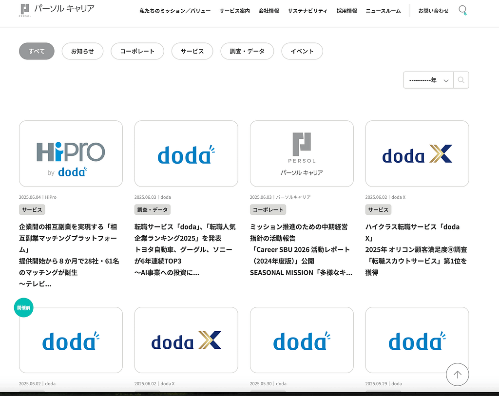 またほかには、2025年6月19日に掲載された、『doda転職求人倍率』なるレポートでも、データに基づくサービス展開のPRを行っている。