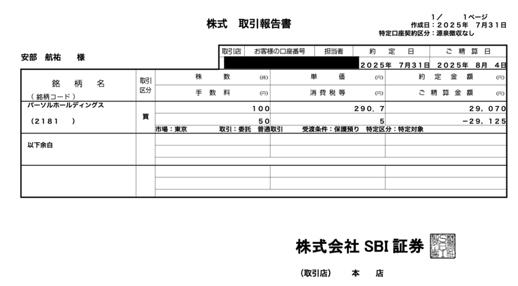 - 取引日:2025年7月31日