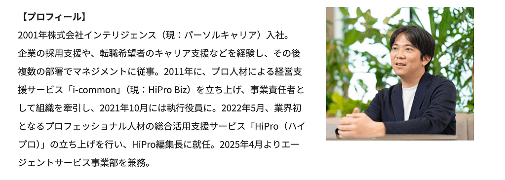 A little more than one month after this article was published on April 13, a small event occurred that may support our earlier concerns. According to the announcement released by PERSOL CAREER on May 22, Yoijiro Kaburagi—the person responsible for the entire HiPro service—“has concurrently assumed the role of heading the Agent Service Division since April 2025.”
