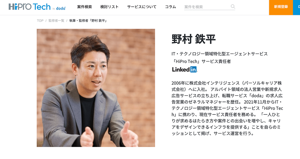 2026年4月5日現在、パーソルキャリア株式会社が運営する「HiPro Tech」の統括責任者であった野村鉄平氏を名乗るLinked Inアカウントが、別人によって不正利用されている可能性があるため、ここに注意喚起します。