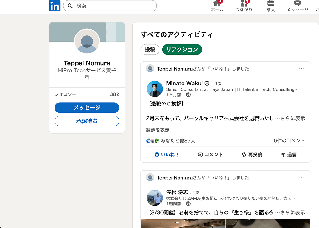 以上のとおり、野村鉄平氏名義のLinkedInアカウントについては、本人に関する説明不在の状態が長く続いている一方で、外形上はなお反応が継続しているように見える。このような状態において、当該反応が本人の意思によるものか、正当な管理権限に基づくものか、あるいはそれ以外の関与によるものかを、外部の閲覧者が判別することはできない。